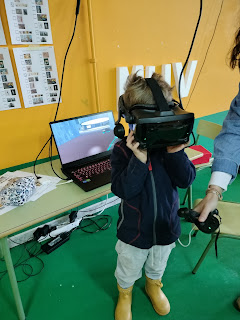Paralelamente coas profes Isa, Marta e Yoli outro grupo instalouse no baixo para realizar outros dous obradoiros ademáis de visitar de xeito virtual as obras do MUV coas gafas de realidade aumentada.